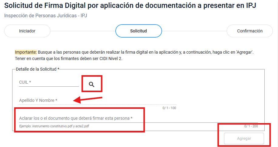 IMPORTANTE: el trámite de solicitud de firmas digitales de CiDi es sólo a los fines de firmar los documentos, IPJ no estudia el contenido de los documentos ni fiscaliza los archivos en esta instancia.