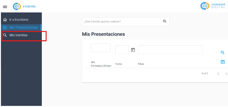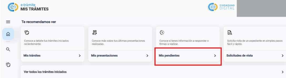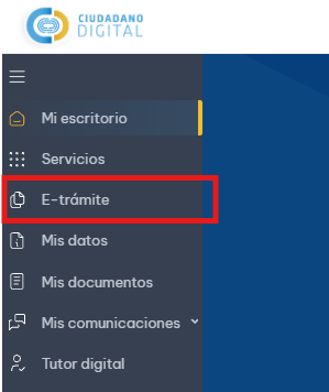 En caso de no visualizar correctamente la notificación o el link, también podrás acceder a la solicitud desde el panel izquierdo seleccionando la opción “e-trámite”:
