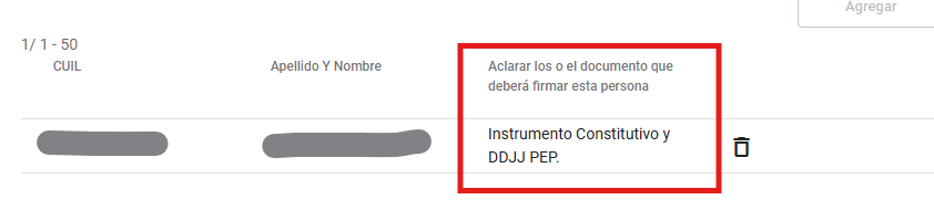 En el campo inferior, deberás aclarar qué documento firmará esa persona recientemente cargada.