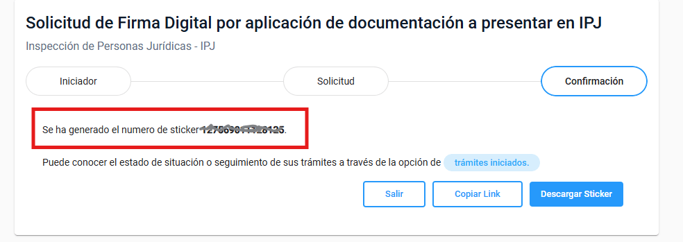 El sistema generará un número de sticker con el cual podrás hacer seguimiento del trámite a través de Consulta SUAC.