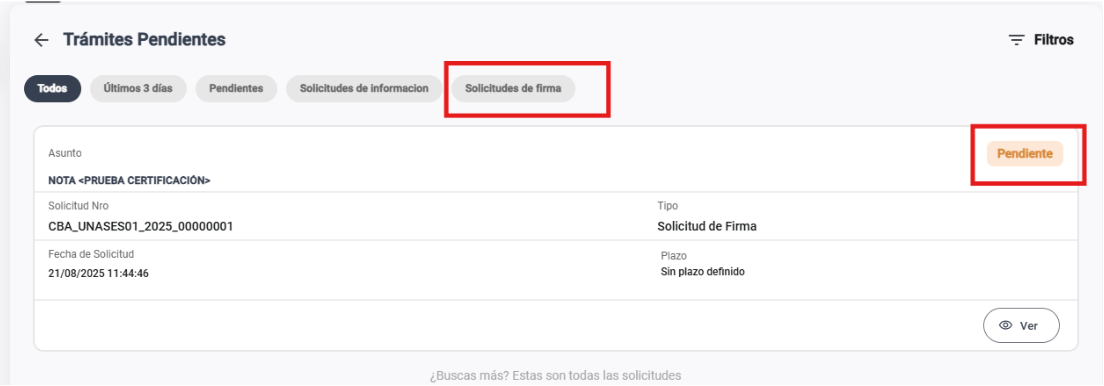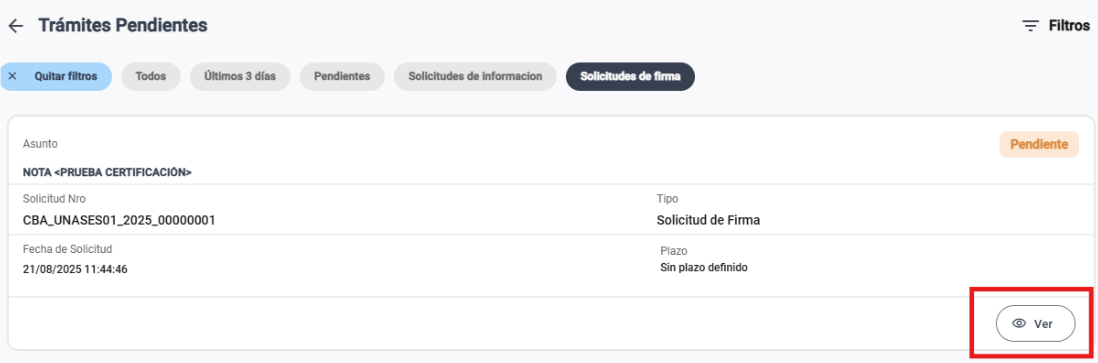 Desde esta pantalla podrás visualizar la solicitud de firma pendiente y el plazo definido.